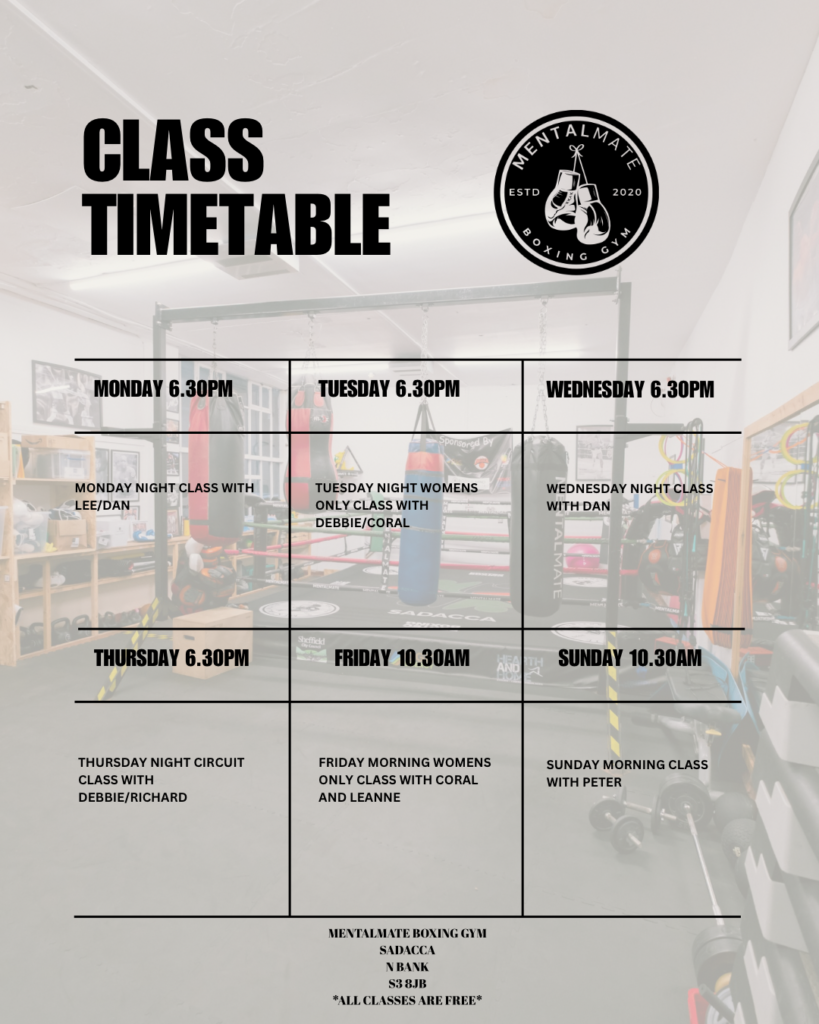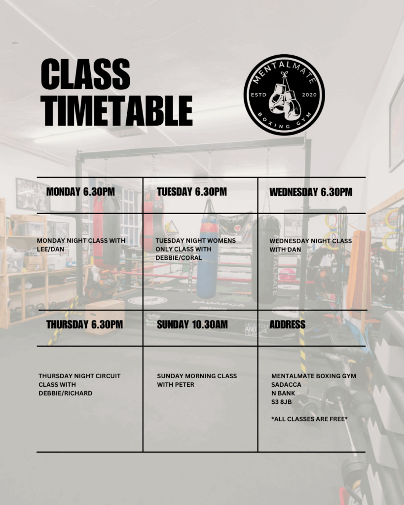 Everyone should have someone to talk to. It sounds so simple, yet so many people don’t have that, which is where Mentalmate comes in! We are building a group of mental mates through boxing down at the Mentalmate Boxing Gym in the Wicker area of Sheffield 6 times per week. We have found that it is much easier to talk and discuss your feelings whilst exercising, if attendees do not wish to talk then that’s fine but it’s nice to know that you are surrounded by people who are all there for the same reason.